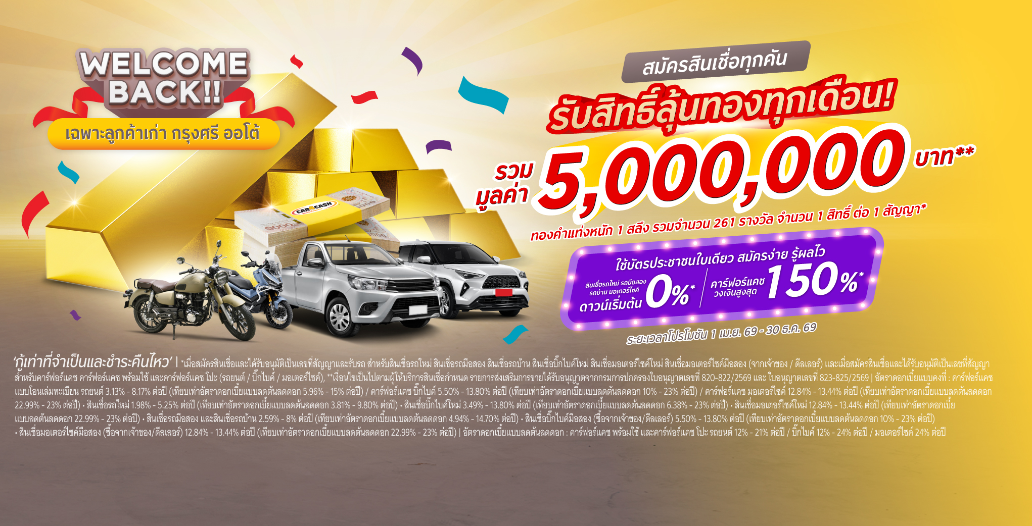 | สินเชื่อรถใหม่ | ลุ้นทองคำ 261 รางวัล รวมมูลค่า 5,000,000 บาท* |