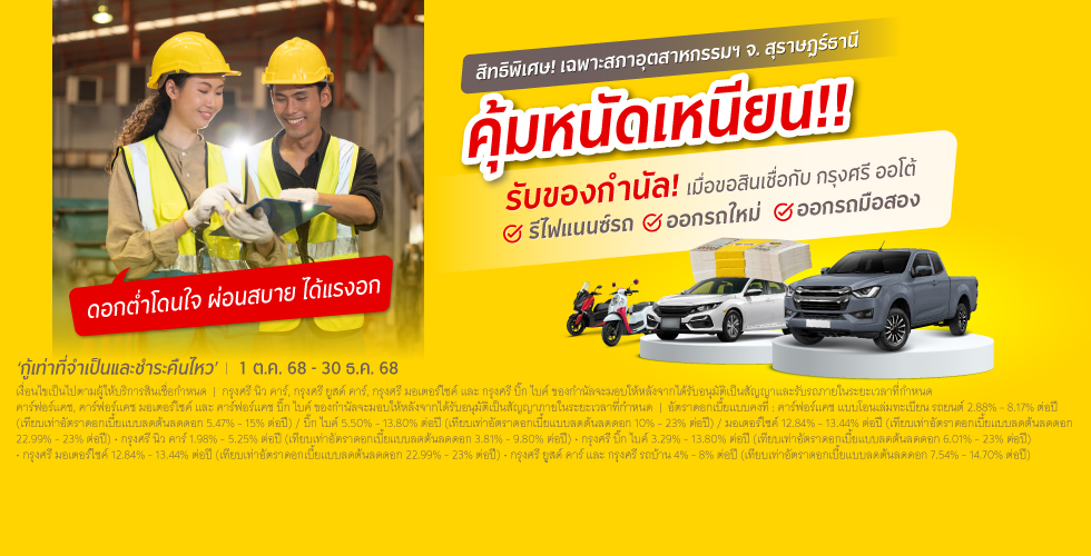 โปรพิเศษ! จากกรุงศรี ออโต้! เฉพาะสมาชิกสภาอุตสาหกรรม จ. สุราษฎร์ธานี