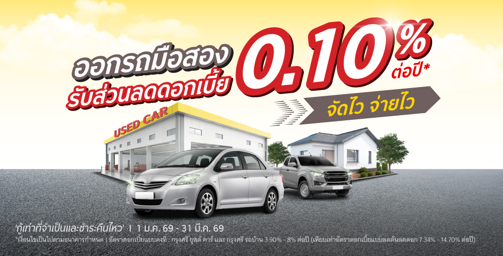 - รับส่วนลด 0.10% จากอัตราดอกเบี้ยปกติ*