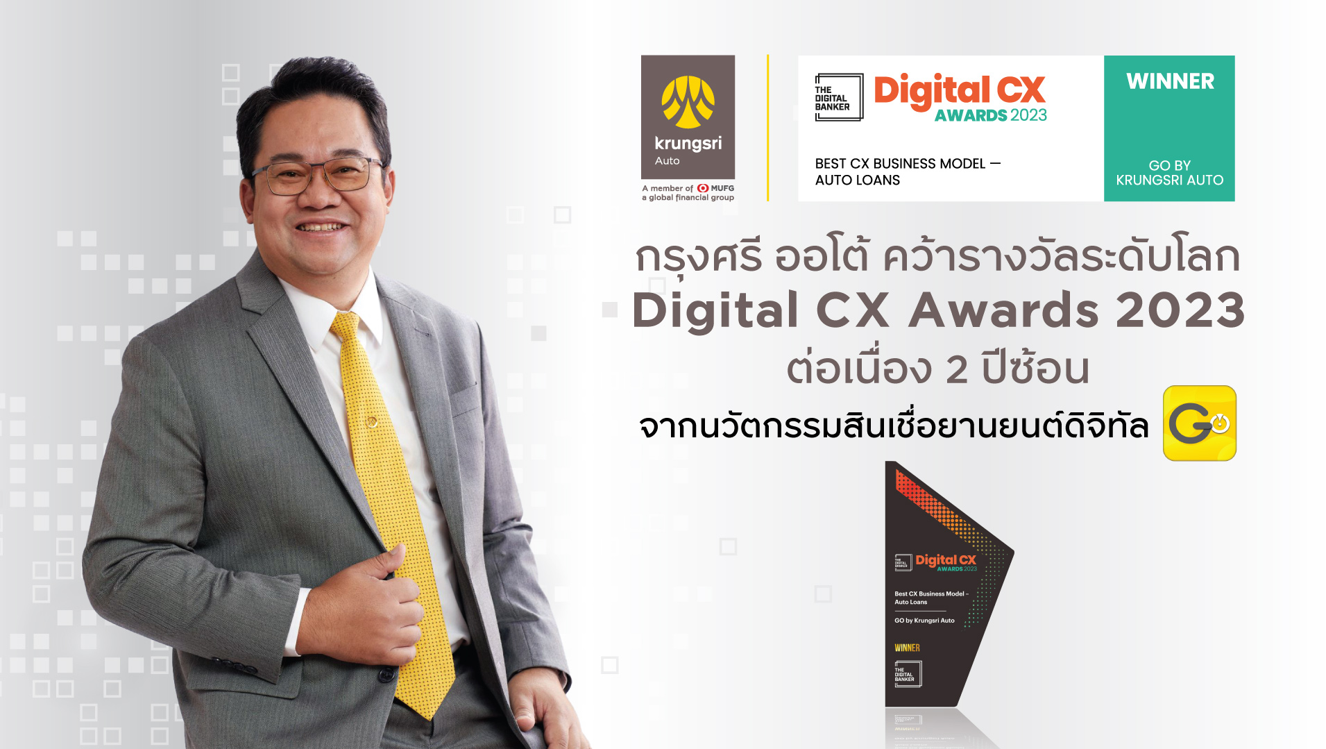 “กรุงศรี ออโต้” ผู้นำธุรกิจสินเชื่อยานยนต์ครบวงจร เครือธนาคารกรุงศรีอยุธยา จำกัด (มหาชน) ตอกย้ำความเป็นแบรนด์ผู้กำหนดทิศทางตลาดด้านดิจิทัลเพื่อผู้ใช้รถในประเทศไทย คว้ารางวัลชนะเลิศ Digital CX Awards 2023 สาขา Best CX Business Model - Auto Loans จาก The Digital Banker สื่อด้านการธนาคารระดับโลกที่ยกย่องสถาบันการเงินที่มีความเป็นเลิศด้านนวัตกรรมดิจิทัล เป็นปีที่ 2 ติดต่อกัน จากผลงานการพัฒนานวัตกรรรมสินเชื่อยานยนต์ดิจิทัลเต็มรูปแบบรายแรกในประเทศไทย เพื่อผู้ใช้รถทุกกลุ่ม บนแอปพลิเคชัน GO by Krungsri Auto ทำให้ลูกค้าสามารถขอสินเชื่อได้ด้วยตัวเองและรู้ผลอนุมัติภายใน 15 นาที นับเป็นนวัตกรรมดิจิทัลทางการเงินที่ตอบโจทย์ไลฟ์สไตล์ผู้บริโภคในเรื่องของความรวดเร็วและความสะดวกสบายเพียงปลายนิ้วสัมผัส