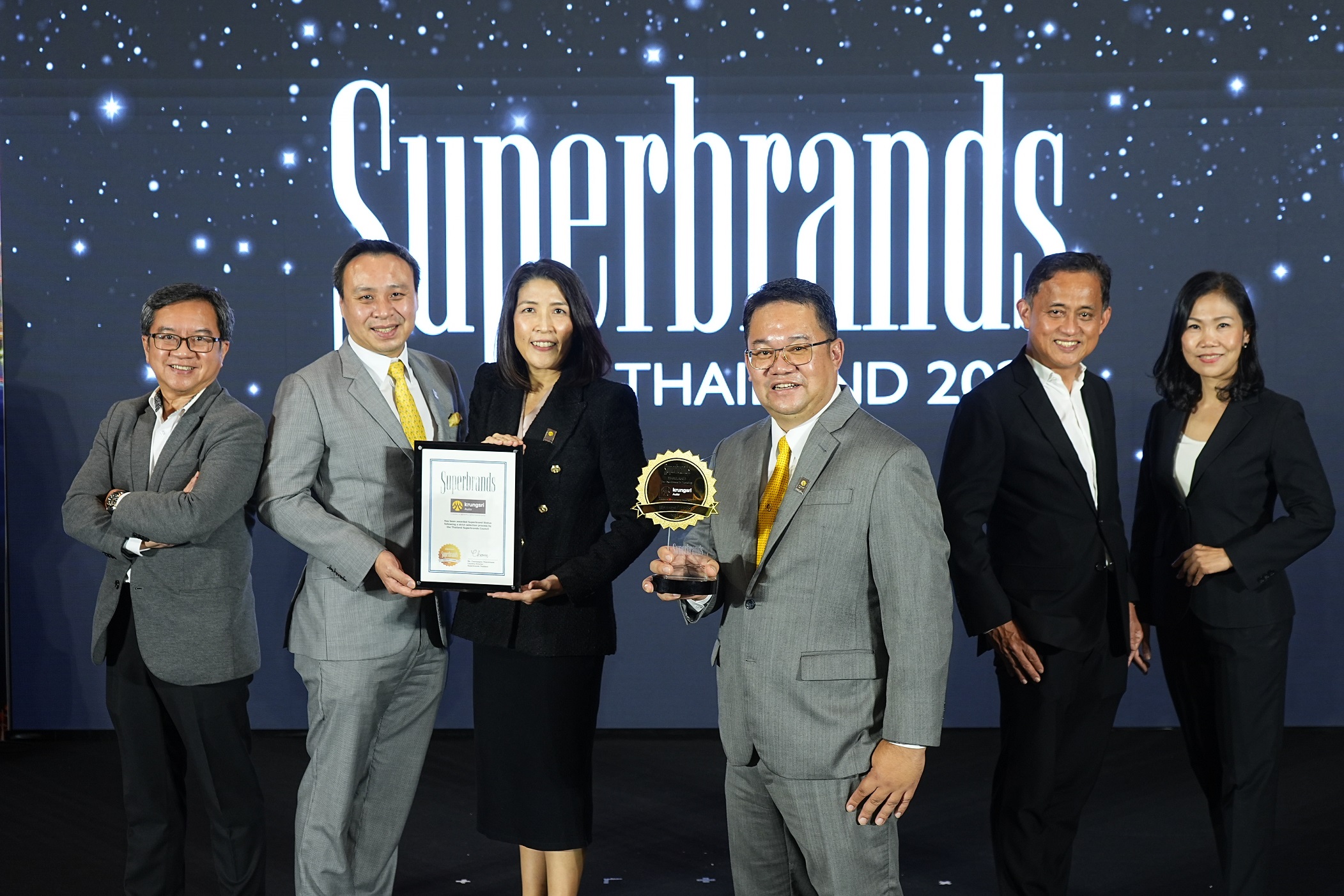 “กรุงศรี ออโต้” ผู้นำธุรกิจสินเชื่อยานยนต์ครบวงจร เครือธนาคารกรุงศรีอยุธยา จำกัด (มหาชน) โดยนายคงสิน คงคา (ที่ 4 จากซ้าย) ประธานคณะเจ้าหน้าที่ด้านธุรกิจสินเชื่อยานยนต์ ธนาคารกรุงศรีอยุธยา จำกัด (มหาชน) นำคณะผู้บริหาร รับรางวัล Superbrands Thailand 2022 ตอกย้ำความเป็นแบรนด์สินเชื่อยานยนต์อันดับหนึ่งที่ผู้บริโภคให้ความเชื่อมั่นและไว้วางใจมาอย่างต่อเนื่องเป็นครั้งที่ 10 (ปี 2554-2565)