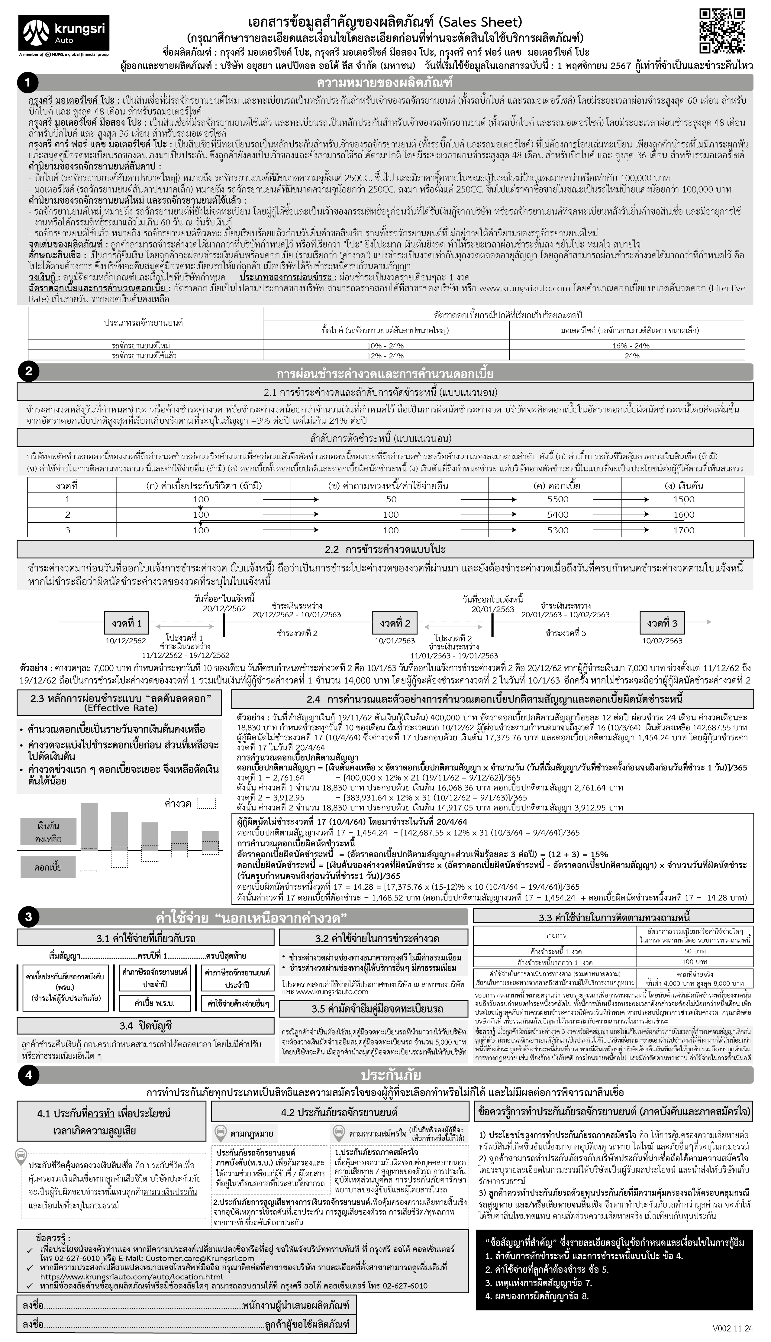 อัตราดอกเบี้ยแบบลดต้นลดดอกเริ่มต้น 12% ต่อปี (เทียบเท่าอัตราดอกเบี้ยแบบคงที่ 0.56% ต่อเดือน )