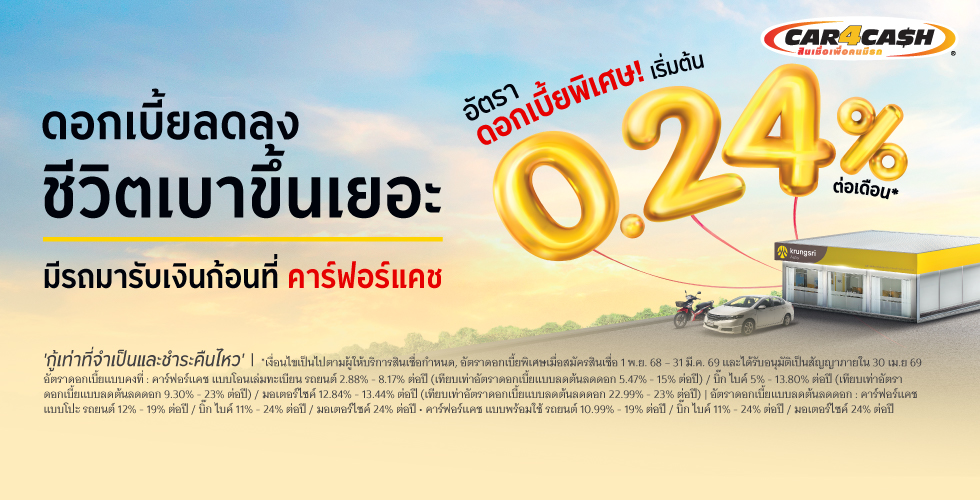 อัตราดอกเบี้ยเบาๆ เริ่มต้น 0.24% ต่อเดือน*