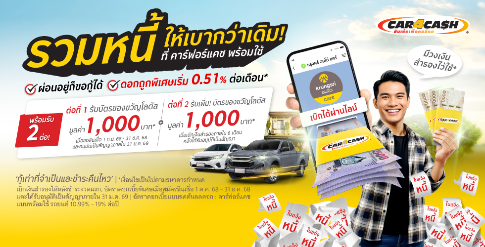 คาร์ฟอร์แคช พร้อมใช้ รถยนต์ ให้บริการโดย ธนาคารกรุงศรีอยุธยา จำกัด (มหาชน)