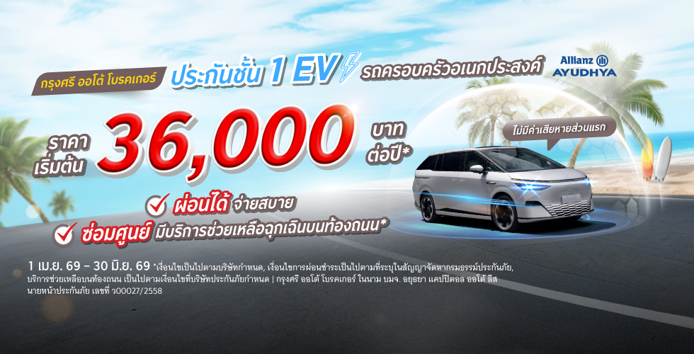 - ระยะเวลาส่งเสริมการขาย 1 เม.ย. 69 – 30 มิ.ย. 69 ผ่านช่องทางเว็บไซต์ กรุงศรี ออโต้ โบรคเกอร์ (www.krungsriautobroker.com) รวมถึงซื้อผ่านช่องทาง LINE Official Account @krungsriautobroker สาขากรุงศรี ออโต้ จุดรับสมัครบัตรเครดิตและสินเชื่อในโฮมโปร และ ศูนย์บริการกรุงศรีเฟิร์สช้อยส์ ที่ขายประกันรถเท่านั้น
