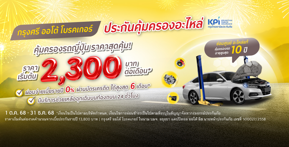กรุงศรี ออโต้ โพรเทค ประกันคุ้มครองอะไหล่รถญี่ปุ่น โดยบมจ. กรุงไทยพานิชประกันภัย