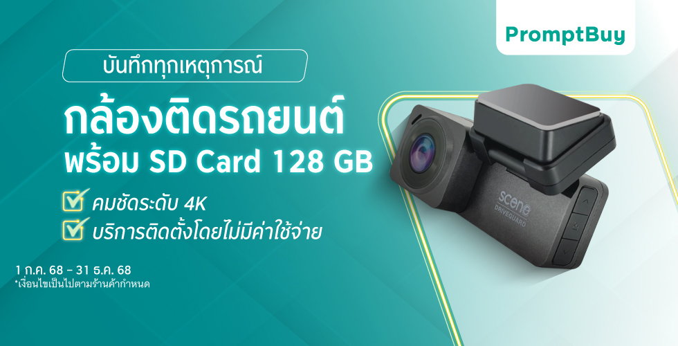 - เมื่อซื้อกล้องติดรถยนต์ Drive Guard ผ่านแพลตฟอร์ม PromptBuy รับของสมนาคุณ SD Card หน่วยความจำ 128 GB ยกเว้นรุ่น Drive Guard 900