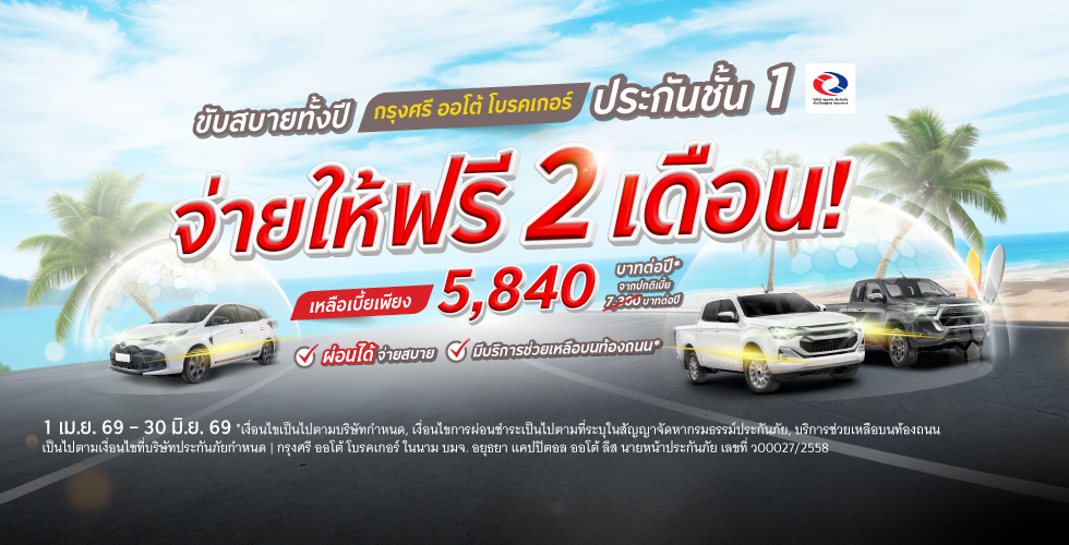 ขับสบายทั้งปี กรุงศรี ออโต้ โบรคเกอร์ จ่ายให้ฟรี 2 เดือนเต็ม!