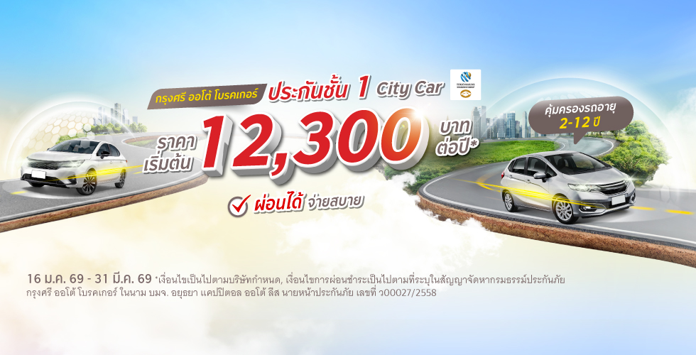 - กรุงศรี ออโต้ โบรคเกอร์ ในนามของ บริษัท อยุธยา แคปปิตอล ออโต้ ลีส จำกัด (มหาชน) เป็นเพียงนายหน้าประกันวินาศภัยเท่านั้น ใบอนุญาตเลขที่ ว00027/2558 การรับประกันภัยเป็นไปตามเงื่อนไขและหลักเกณฑ์ที่บริษัทประกันภัยกำหนด ผู้ซื้อควรทำความเข้าใจในรายละเอียด ความคุ้มครอง และเงื่อนไขก่อนตัดสินใจทำประกันภัยทุกครั้ง